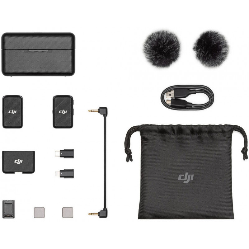 DJI Mic on varustatud kahe saatjaga ning mõlemal on sisseehitatud mikrofon. Mõlemad saatjad toetavad ringsuunalist heli – ideaalne mitme inimesega intervjuude ja väikeste stuudiosalvestuste jaoks.
