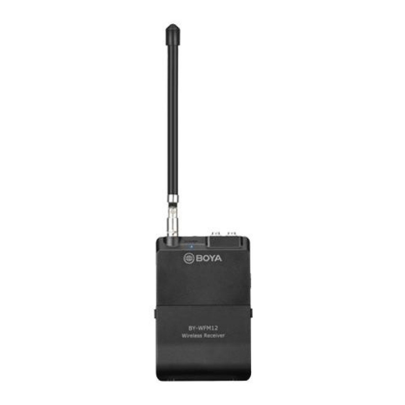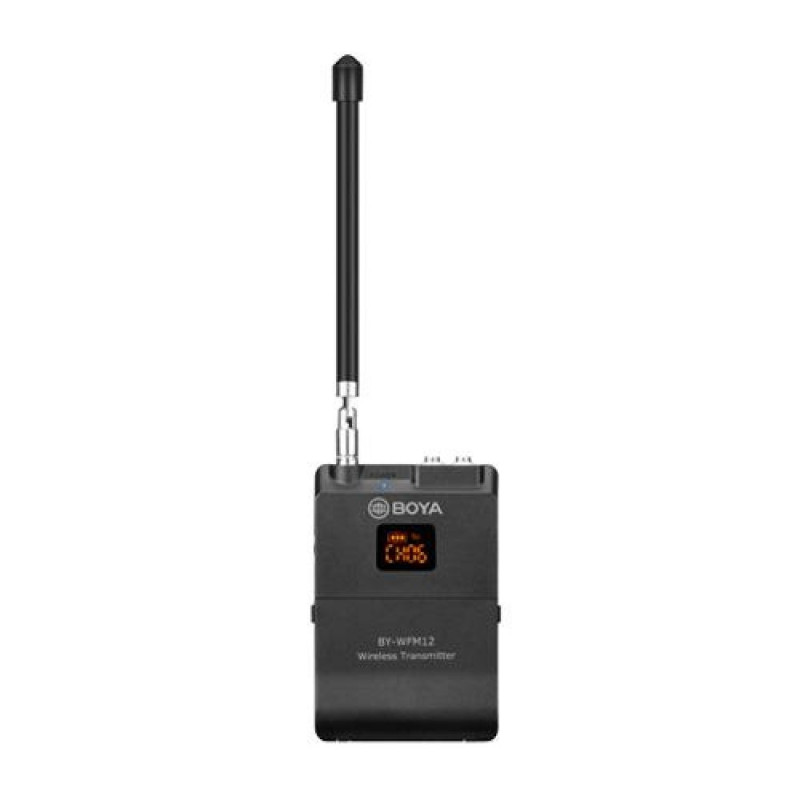 The BOYA BY-WFM12 is a 12-Channel VHF Wireless Microphone System, capturing audio with smartphones, DSLRs, camcorders, audio recorders, PCs and more.<br><br><b>Omnidirectional condenser microphone for better audio</b><br>The BOYA BY-WFM12 features an omnidirectional condenser microphone, which supports Intelligent noise reduction, anti-interference. Adopted ABS material and compact design, it greatly improves sound quality and high fidelity. <br><br><b>12 switchable channels to keep you free from interference</b><br>With 12 switchable channels, the BOYA BY-WFM12 can free from cross-frequency interference and provide high-fidelity sound, suitable for indoor and outdoor recording. When there is no interference, the BOYA BY-WFM12 supports up to 40 meters of signal transmission.<br><br><b>Humanized design, Easy to use</b><br>The BOYA BY-WFM12 is an automatic infrared matching of equipment. The transmitter and receiver automatically match and connect, transmit signals, and intelligently reduce noise. Powered by two AA batteries, the BOYA BY-WFM12 allows up to 6 hours using.BOYA BY-WFM12. Wireless range: 40 m. Receiver type: Bodypack receiver, Antenna type: Removable. Transmitter type: Bodypack transmitter. Channels quantity: 12 channels, Sensitivity: 2 μV, Frequency range: 204 - 215 MHz. Battery technology: Lithium-Ion (Li-Ion), Battery type: AA