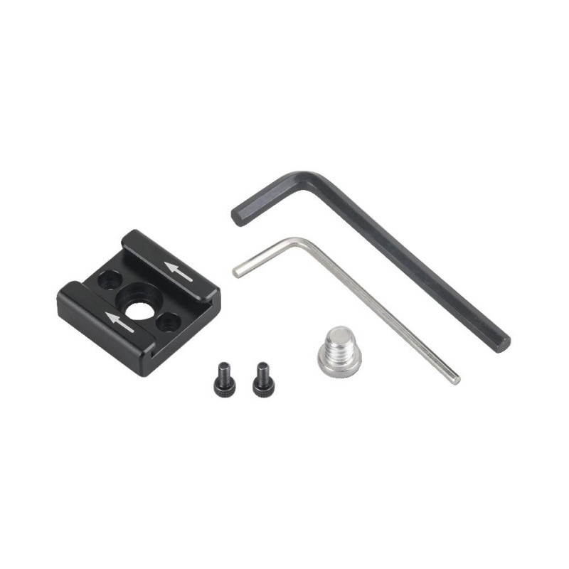 Kinnituse ühel küljel asuvad spetsiaalsed painutatud kaldpinnad aitavad vältida tarvikute tahtmatut lahtitulekut. Lisaks on adapteri pinnale märgitud kaks valget noolt, mis juhendavad õiget paigaldussuunda, tagades kiire ja mugava kasutuskogemuse.
