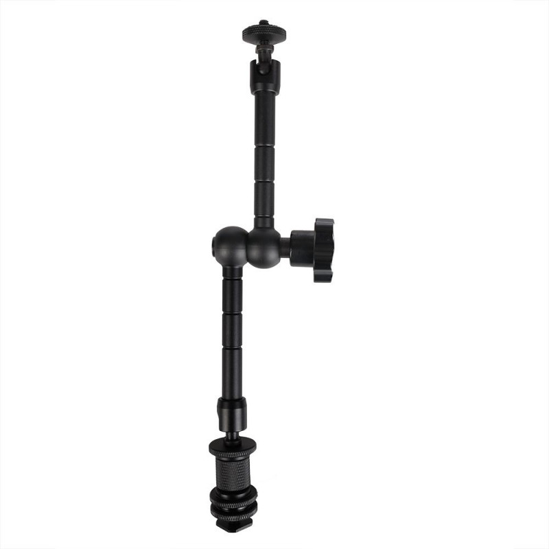 The Falcon Eyes Magic Arm MSW-2A450 attaches to the camera's hotshoe. It's 290mm long and has a 1/4" male thread on top for accessories like a small LED light. Tighten the screw to secure it. Includes 1 Magic Arm.Osta kohe, viimased eksemplarid laos!