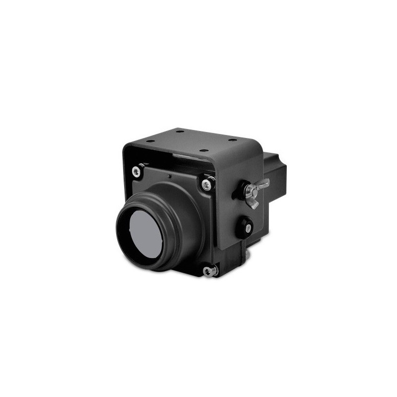 Technical data: Sensor resolution: 384x288. Sensor Type: Uncooled FPA. Field of view: 37.9°×28.5°. Focal length: fixed, >/= 6m. Wavelength: 8-14 microns (micrometers). Power supply: DC 12-32V. Consumption: <6W. Video output: PAL. Frame rate: 50Hz. Focus type: fixed athermatized lens. Shock resistance: GJB150A-2009. Vibration resistance: GJB150A-2009. Electromagnetic compatibility: GJB151A. Operating temperature: -41°C~ +65°C. Storage temperature: -55°C~ +85°C. Protection class: IP67. Weight: 750g. Size: 64x64x115mm.