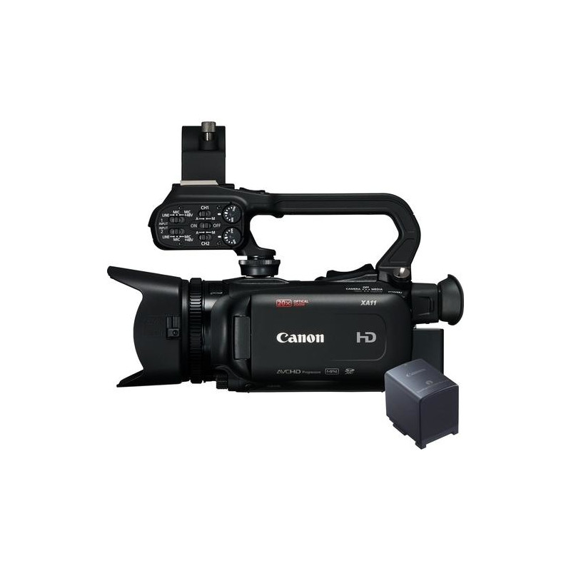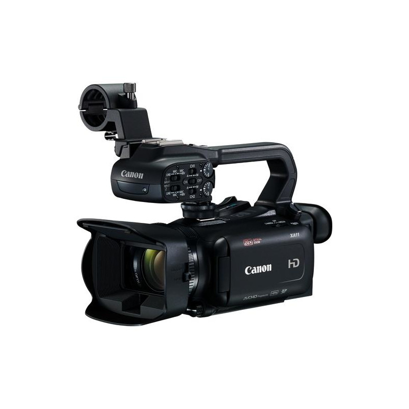 The XA11 is a compact, professional Full HD camcorder with superb optical performance. Suitable for News and Sports production, this camcorder is small enough to carry with ease, yet powerful enough to record important, high-level events. The XA11 incorporates an HD-SDI interface while the two XLR inputs allow two different channels to be selected with independently-adjusted volumes. The headphone jack allows you to monitor sound levels with optional GPS support to record location and time. Designed with a 3.0-inch touchscreen, tiltable EVF and a switchable zoom/focus lens ring, this professional camcorder remains compact and discreet – making it ideal for high-action shoots when both speed and mobility are essential.Canon XA XA11. Total megapixels: 3.09 MP, Sensor type: CMOS, Optical sensor size: 25.4 / 2.84 mm (1 / 2.84"). Optical zoom: 20x, Digital zoom: 400x, Focal length range: 3.67 - 73.4 mm. Camcorder media type: Memory card, Compatible memory cards: SD, SDHC. Focus adjustment: Auto/Manual. White balance: Daylight, Fluorescent H, Fluorescent L, Shade, Tungsten