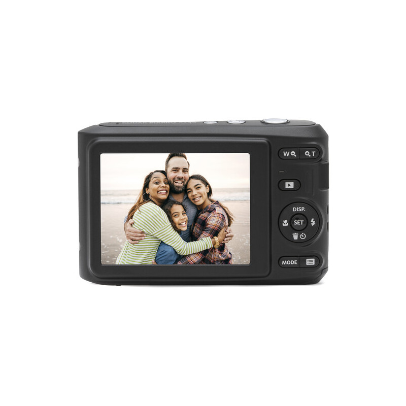 Funktsioonid 27 mm lainurkobjektiiv 4x optiline suum 2,7" LCD ekraan 16 MPTehnilised kirjeldusedPildistamine Anduri eraldusvõime: Tegelik: 16,76 megapikslit Efektiivne: 16,35 megapikslit Anduri tüüp: 1/2,3"-tüüpi CMOS Pildi stabiliseerimine: digitaalneObjektiiv Fookuskaugus: 4,9–219,6 mm (35 mm ekvivalentne fookuskaugus: 27–108 mm) Optiline suum: 4x Digitaalne suum: maksimaalne 6x (24x kombineeritud suum) Fookusulatus: Tavaline: 60 cm kuni lõpmatuseni Makro: 5 cm kuni lõpmatuseni Optiline disain: 7 elementi 7 rühmasKokkupuute kontroll Säriaeg: elektrooniline katik – 1/2000 kuni 30 sekundit manuaalrežiimis ISO-tundlikkus: 100 kuni 3200 automaatrežiimis Mõõtmismeetod: tehisintellekti AE, keskkaaluline keskmine, näotuvastus, punkt Särituse kompensatsioon: -3 kuni +3 EV (1/3 EV sammu) Valge tasakaal: Eelseaded: automaatne, pilvine, värvitemperatuur, päevavalgus, luminofoorlamp, luminofoorlamp CWF, hõõglamp, käsitsiPiltide jäädvustamine Kuvasuhe: 3:2, 4:3, 16:9 Pildi failivorming: JPEGVideo jäädvustamine IP voogesitus: puudubLiides Meedia/mälukaardi pesa: üks pesa: SD/SDHC/SDXC [maksimaalselt 512 GB] Sisemälu: 63 MB Video I/O: puudub Heli sisend/väljund: puudub Toite sisend/väljund: puudub Muu I/O: 1 x Micro-USB (USB 2.0) andmeväljund Juhtmeta: puudub Globaalne positsioneerimine (GPS, GLONASS jne): puudubEkraan Suurus: 2,7"Välklamp Sisseehitatud välklamp: jah Välgurežiimid: automaatne, automaatne / punasilmsuse vähendamine, täitmine, punasilmsuse vähendamine, aeglane sünkroonimine, aeglane sünkroonimine / punasilmsuse vähendamine Väline välkühendus: puudubKindral Aku tüüp: 2 x AA (umbes 120 kaadrit)