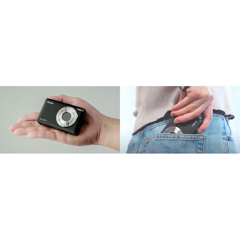 Poolik päästikuvajutus aktiveerib automaatse teravustamise, et pildid oleksid teravad ja selged. Tänu lainurkobjektiivile jäädvustab kaamera avara kaadri ning sobib hästi nii maastike kui ka grupipiltide tegemiseks. Ligikaudu 101 g kaaluv seade istub mugavalt peopessa ja on lihtne kõikjale kaasa võtta.