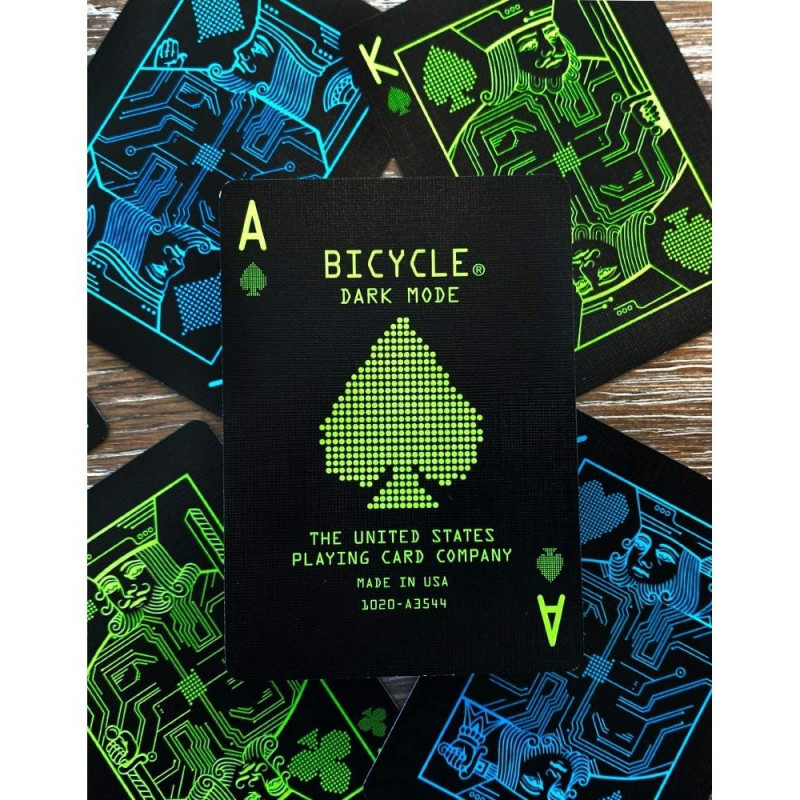 Dark Mode'i kaardipaki tume ja stiilne disain toob digimaailma sinu kaardilauale. Tumedad kaardid ja heledad illustratsioonid näevad mängude ja kaarditrikkide ajal muljetavaldavad välja. See on uus Bicycle'i toode, trükitud kvaliteetsele paberile Air-Cushion pinnaga. Kaardid on vastupidavad ja pikaealised.