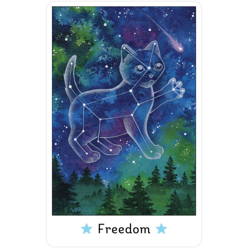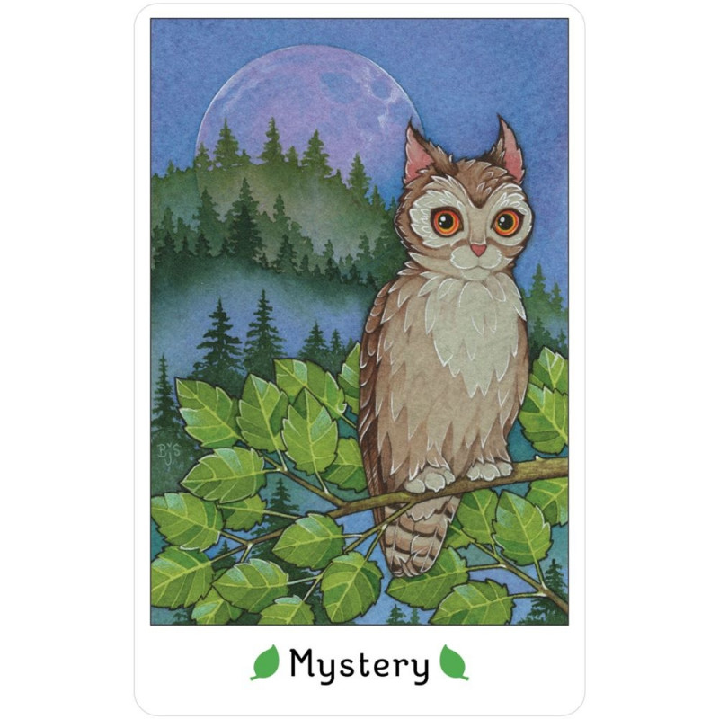 Metsa sügavustes peitub salapärane maagiline maailm, kus sind ootab piiritu rõõm. See rahulik tervendav keskkond on koduks võluvate haldjakassidele, kes kutsuvad sind looduslikku oaasi, kus õpid palju kasulikku. 41 kaarti on jagatud neljaks osaks: Inspiratsioon, Mõtisklus, Mugavus ja Pidustus ning lisatud on üks lisakaart - Rahulolu kaart. 140-leheküljeline illustreeritud raamat sisaldab iga kassi kohta kinnitust, ajalugu ja nõuandeid.