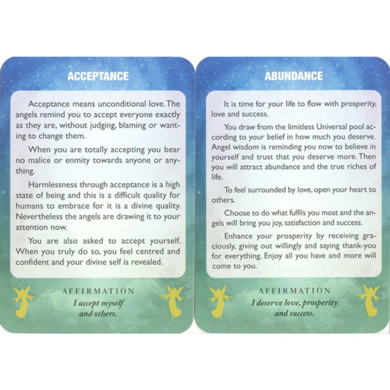 Selles kaardipakis olevad 55 inglikaarte esindavad erinevaid omadusi, mis on omistatud inglitele, ning neid saab kasutada juhendamiseks, inspiratsiooniks või kinnitusteks. Kaardid aitavad sul tunda kõrgemaid ingellikku vibratsioone ja nende toetust igapäevaelus. Need inspireerivad kaardid tõstavad sinu teadlikkust ja aitavad automaatselt ligi tõmmata positiivseid inimesi ja olukordi ning muuta negatiivseid mõttemustreid. Kaardid on taskusuuruses, mistõttu on neid mugav kaasas kanda ja kasutada alati, kui vaja. Inglid on alati sinuga.