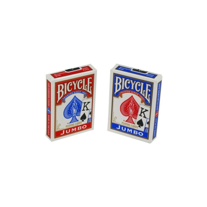 Iga kaardipakk on valmistatud ainulaadsest paberist ning kaetud spetsiaalse kattega. Tänu sellele on kliendid juba aastaid usaldanud Bicycle’i tooteid. Bicycle’i kaartide ainulaadne omadus on Air Cushion viimistlus. See salajane valem tagab, et Bicycle’i kaardid kestavad kauem, neid on lihtsam segada ja jagada, mis muudab kaardimängu veelgi nauditavamaks! Bicycle’i kaardipakk suurte (JUMBO indeksitega) numbrite ja sümbolitega. Pakk sisaldab 55 pokkerisuuruses kaarti (63 x 89 mm): 52 tavalist kaarti, 2 jokkerit ja infokaart. Suurendatud indeksid asuvad esikülje vastasnurkades. Pakk on uus, suletud ja Bicycle’i logoga märgistatud.