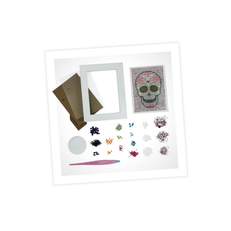 Included : 1 self-adhesive board, assortment of diamante, 1 wax tip stylus, 1 small tray, bags for storing the diamante, 1 wooden frame.