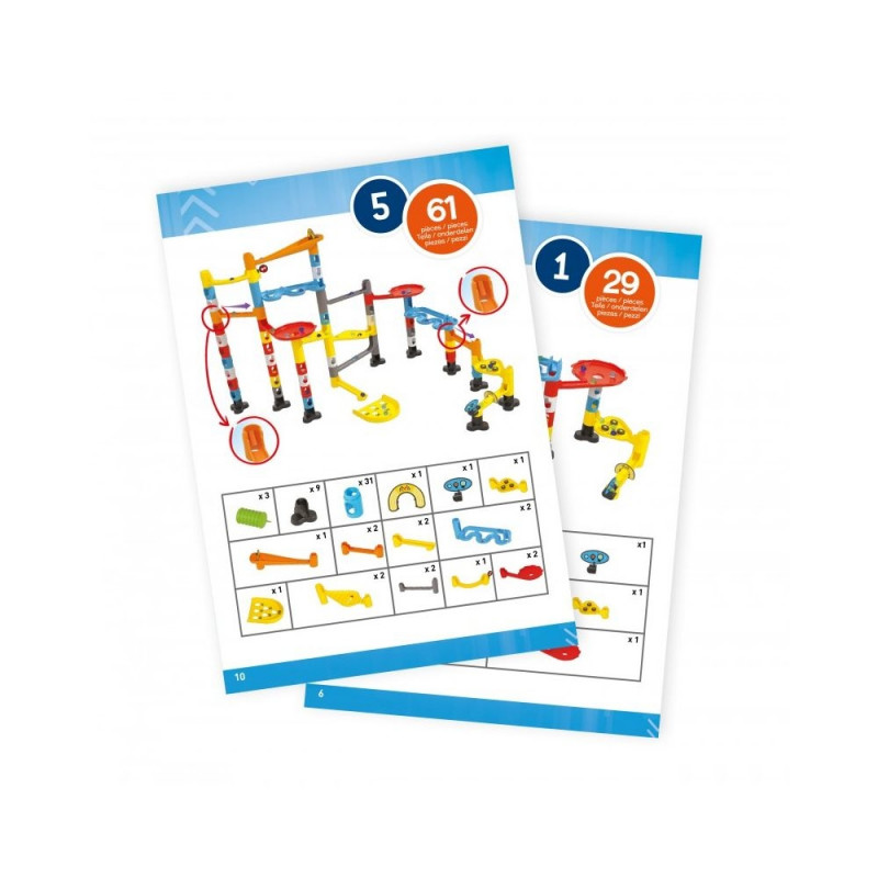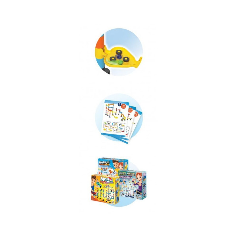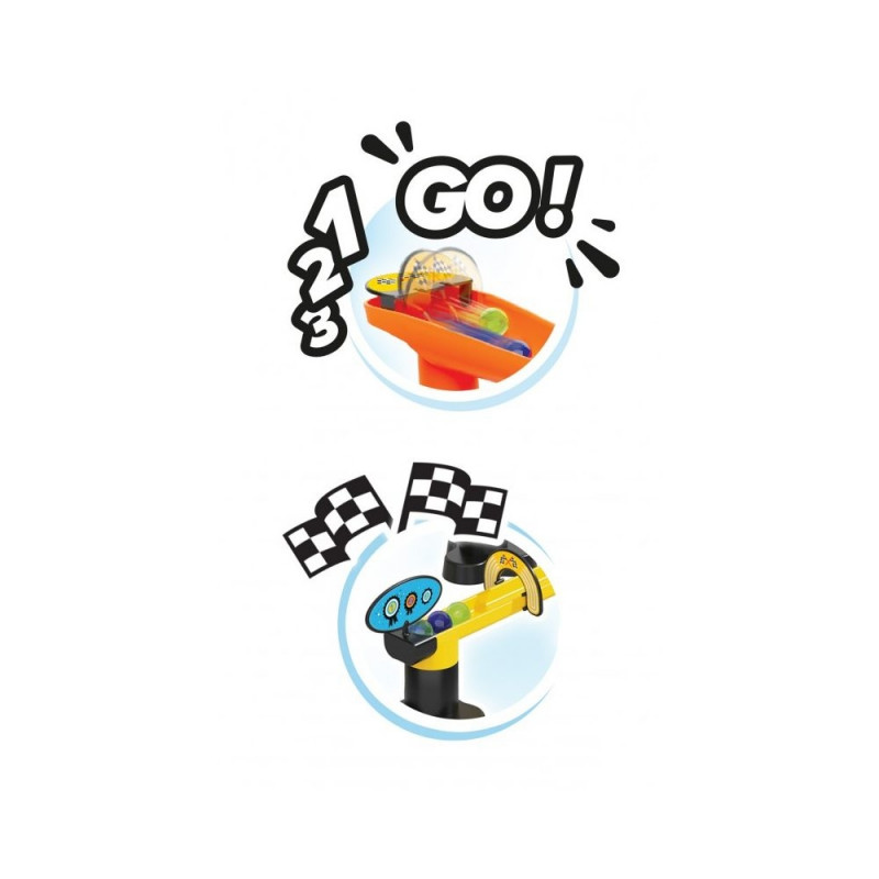 Assemble the maze, choose your coloured marble and put it on the starting line next to the competitors.