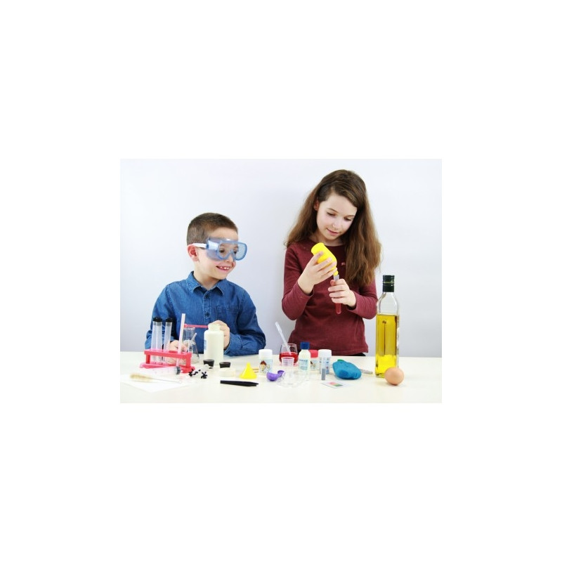 Experiment with mixtures and explore kitchen products such as eggs, vinegar, oil... Includes a flask, test tubes and protective goggles.