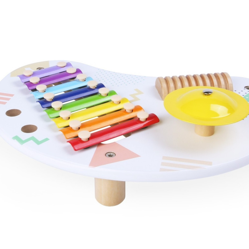 Muusikalaual on erinevad rütmipillide elemendid - trummitaldrik, konnapill ning ksülofon 8 kõlapulgaga ja kaks pulka, millega nendel mängida.