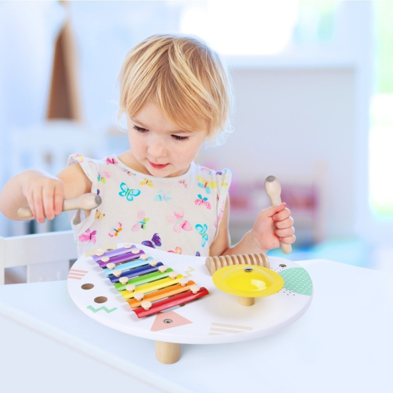Muusikaliste elementidega mängimine arendab lapse muusikalist kuulmist ning rütmitaju. Samuti ka tema motoorseid oskusi ning loovust.