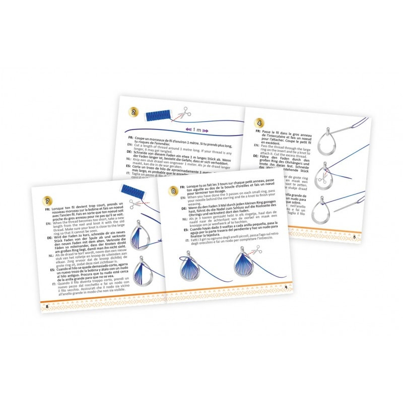 Included : 3 inserts, 6 rings, 6 earring shafts, threads in 3 colours, 1 needle, 1 instruction sheet in colour.