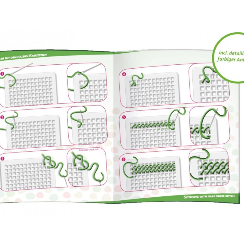Accessories included | Needle Colored wool Printed motif in a frame. |