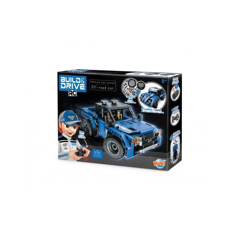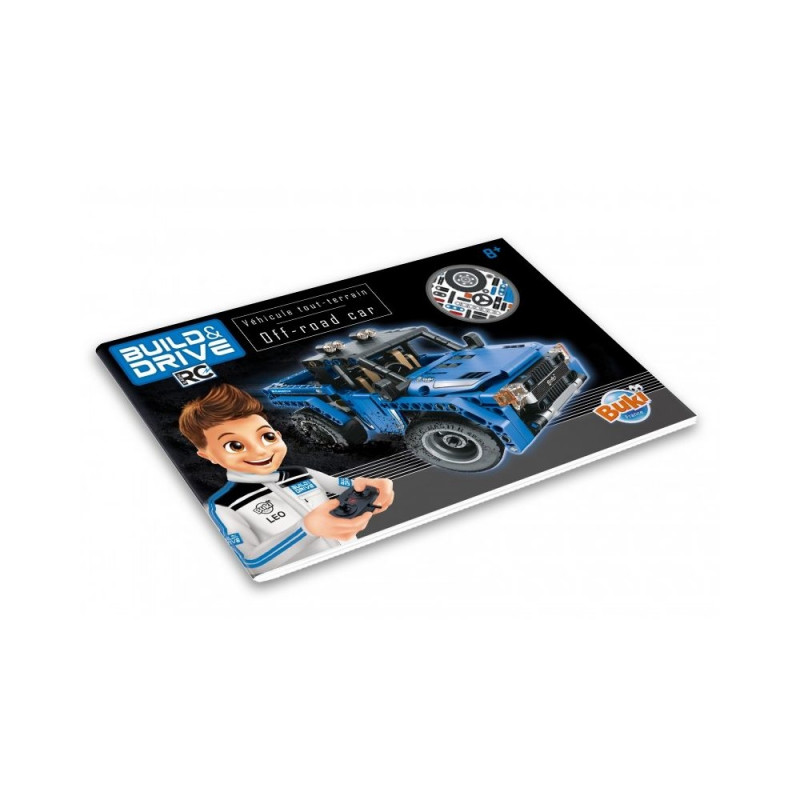 Once assembled, drive the car with the remote control and take part in four driving challenges. The car moves in every direction: forwards/backwards/right and left.
