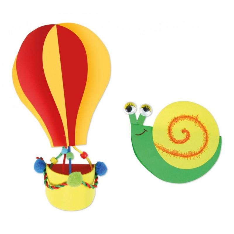 Komplekt sisaldab värvilisi pabereid, vahtkummist osi, pulki, silmi, pom-pomme, nuppe ja palju muud.