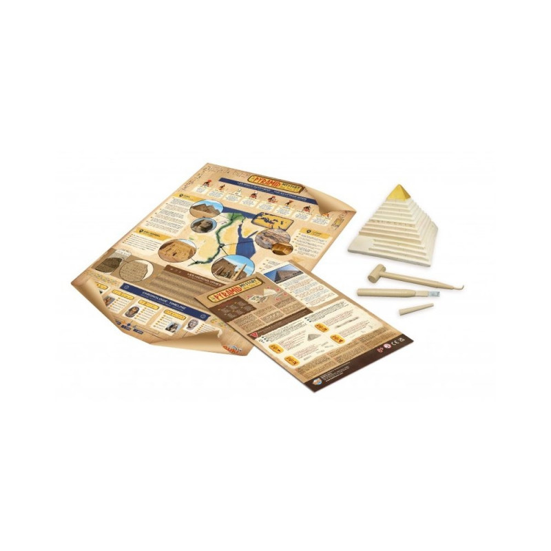 Included : 1 pyramid, 1 hammer, 1 bradawl, 5 tresors, 1 poster A3 et 1 illustrated booklet.