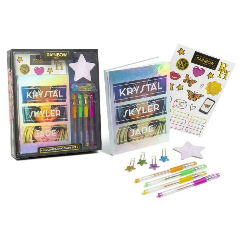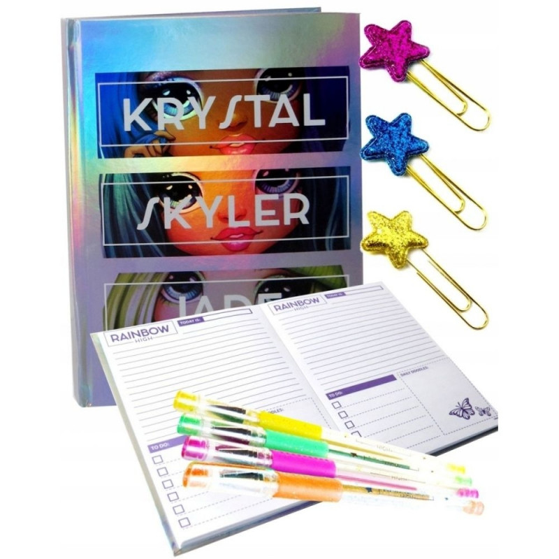 Komplekti kuulub: holograafiline päevik (100 lk), 4 geelpliiatsit, kleebiste leht, 4 kirjaklambrit, kleepuvad märkmepaberid.