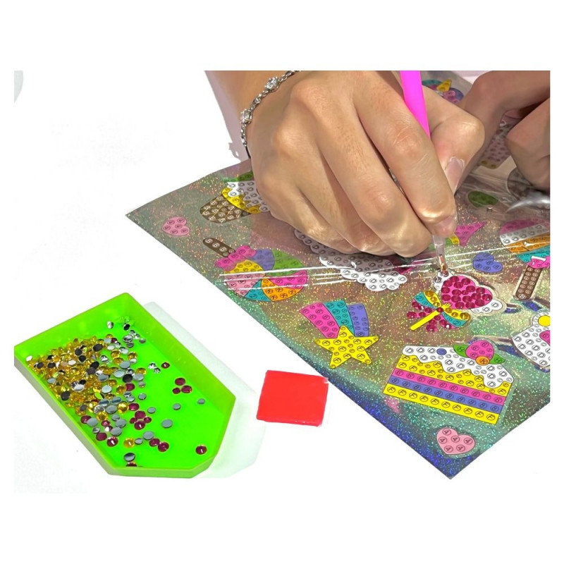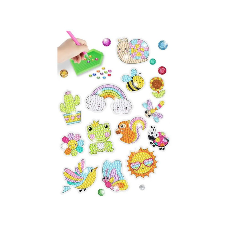 Komplektis on erinevat värvi kristalle, millega saab kleebiseid kaunistada. Teemantide kinnitamise pind on kaetud liimikihiga ning pinnal olevad numbrid näitavad, mis värvi kasutada. Aseta teemandid ükshaaval ja loo väike kunstiteos!