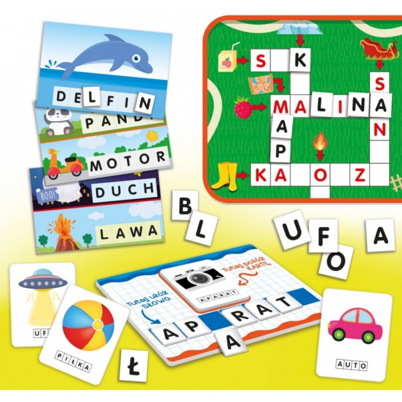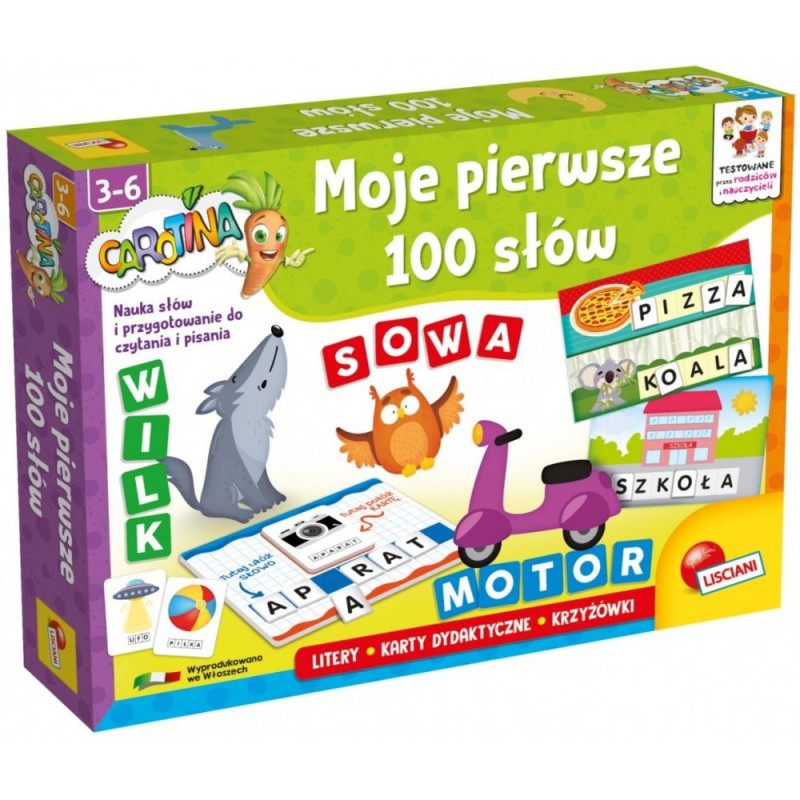 Rikkalik hariduskomplekt, mille abil saavad lasteaialapsed selgeks üle 100 sõna. Mängude käigus moodustavad lapsed koos Carotinaga tähtedest sõnu! Palju tegevusi, mis tutvustavad lugemist ja kirjutamist!