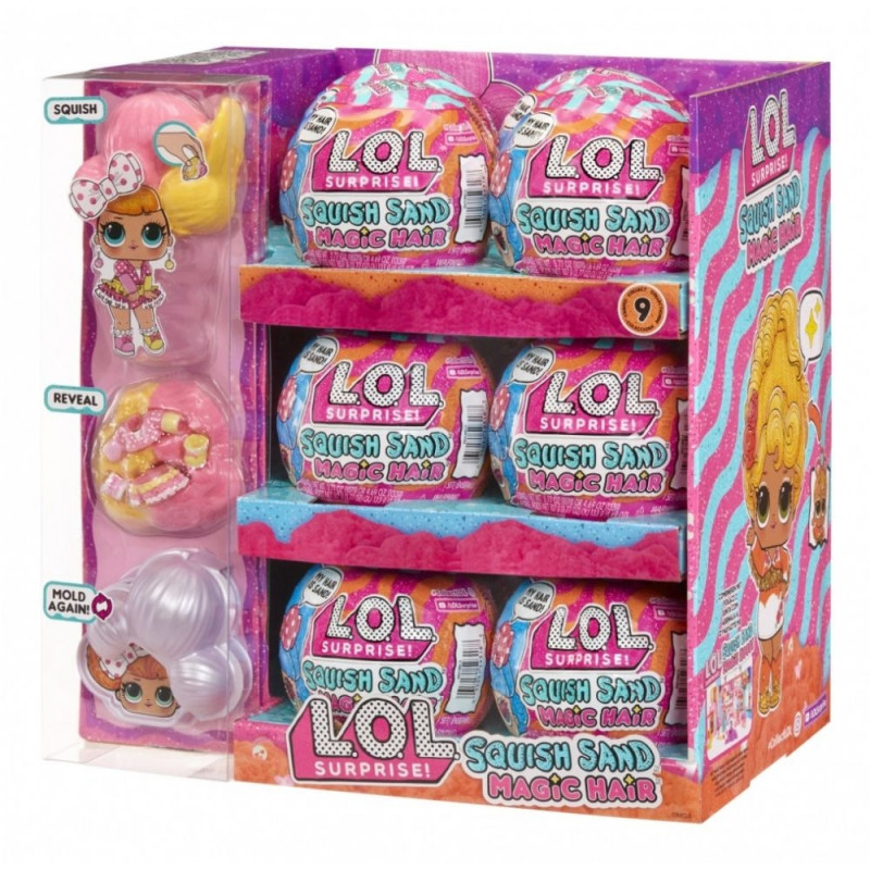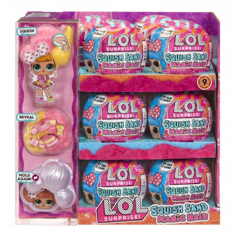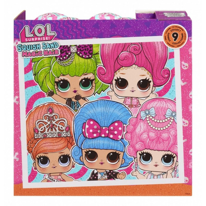 Avasta uued kollektsioneeritavad L.O.L. Surprise nukud, millel on palju erinevaid kujundeid, mida ise luua. Iga nukk sisaldab käsna moodi liiva ja vorme, millega saab teha lõbusaid sädelevate soengutega kujusid. Liiva saab korduvalt kasutada ning luua palju erinevaid mudeleid 9 erinevas värvitoonis.