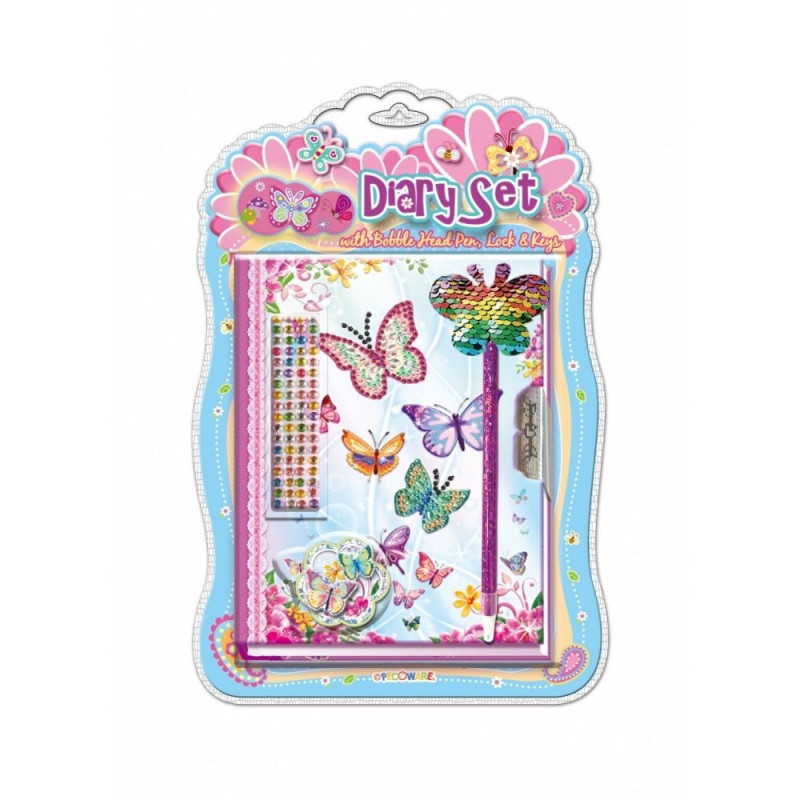 Paks päevik värviliste lehtedega, mis suletakse lukuga. Komplekti kuuluvad dekoratiivne pastakas, 3D kleebis, isekleepuvad litrid kaunistamiseks ning 2 võtmekest luku jaoks.