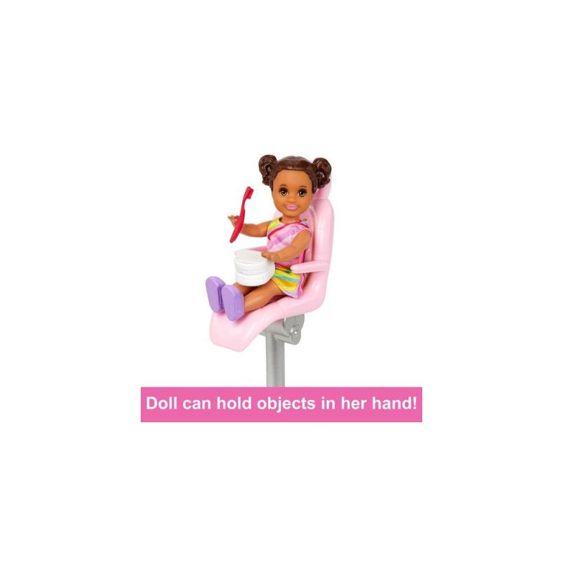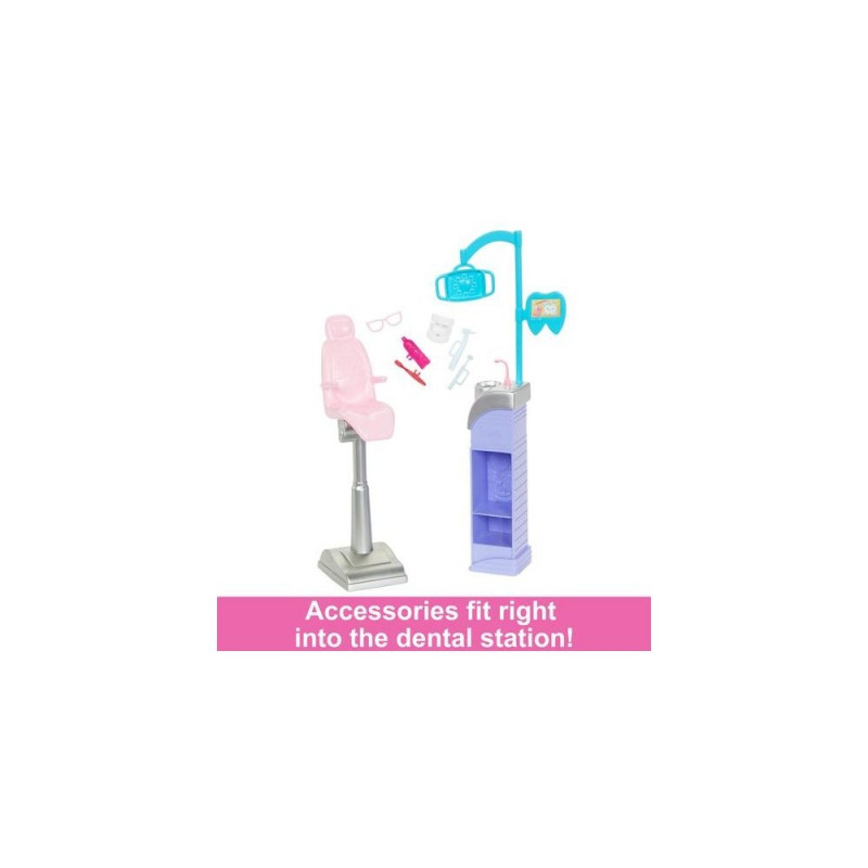 Barbie Dentist doll is ready to brighten smiles! This dental clinic playset includes two dolls, an exam chair, a dental station, and smaller accessories like dental tools, toothbrush and toothpaste so kids can help Barbie doll take care of her adorable patient. Kids can dream big and imagine everything they can become with Barbie Career dolls! Doll cannot stand alone. Colours and decorations may vary.Barbie Dentist Doll. Doll type: Fashion doll, Doll's gender: Female, Recommended age (min): 3 yr(s), Suggested gender: Boy/Girl. Height: 258.4 mm. Material: Fabric, Plastic, Product colour: Multicolour