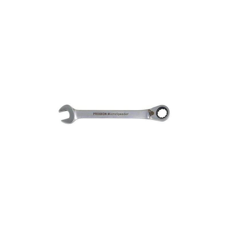 The 72-teeth inner ring gear made of special high alloy steel allows ratcheting even when the spanner can only be moved through 5°. Nevertheless, the torque transmission capacity far exceeds the DIN/ISO standards. CrV steel shaft with optimum surface protection: double nickel-plating and single matt-finished chrome-plating. Socket sizes easy to read due to laser marking!<br>As the 15º offset ring makes turning over of the spanner impossible, the spanner offers a reverse lever. Its design makes it ideally suited for working on flat surfaces.Proxxon 23 137. Wrenches/sockets sizes: 15 mm, Product colour: Stainless steel, Material: Chromium-vanadium steel. Number of pieces: 1 pc(s)