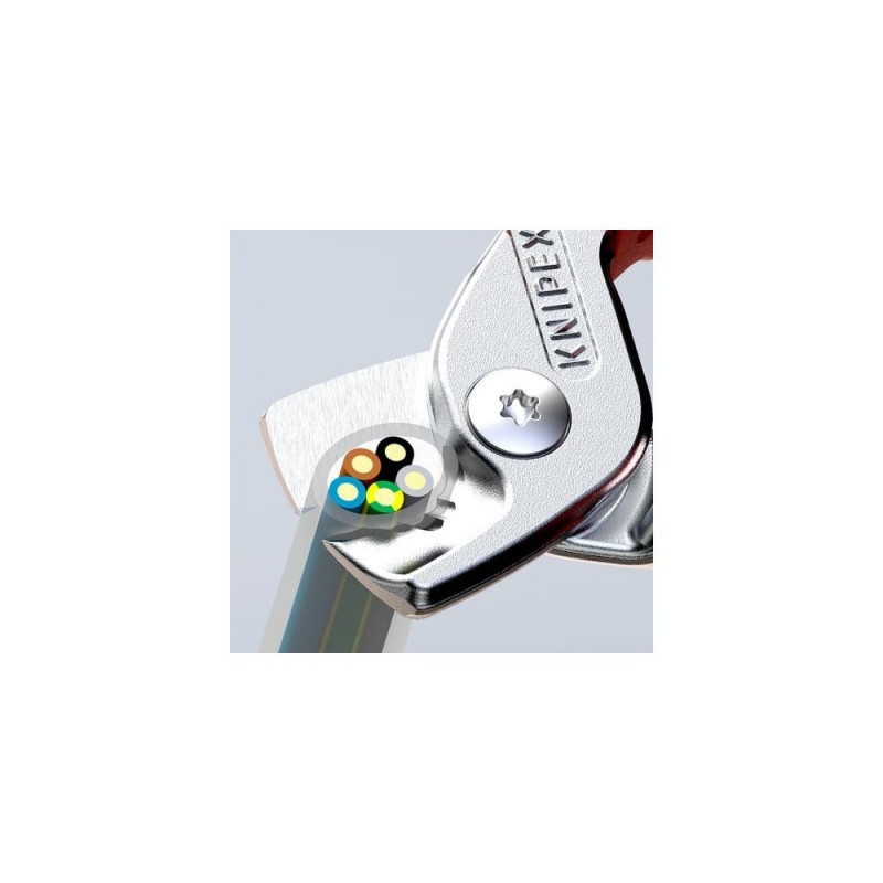 Knipex Kaablikäärid võimaldavad lõigata vask- ja alumiiniumkaableid puhtalt ning ilma kaabli deformeerimiseta. Tänu spetsiaalsele lõiketerade geomeetriale saavutatakse sile ja täpne lõige, mis on oluline elektritööde ohutuse ja kvaliteedi tagamiseks. Käärid sobivad ideaalselt ühe- ja mitmeharuliste kaablite lõikamiseks, kuid ei ole mõeldud terastraadi ega kõvade materjalide lõikamiseks.
