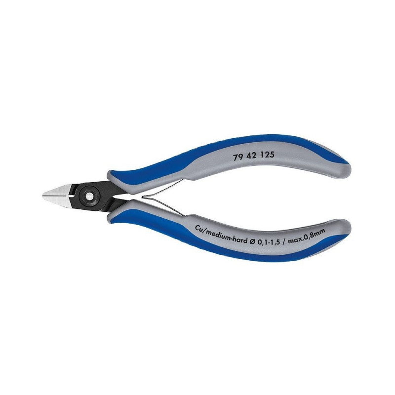 Knipex 79 42 125. Tüüp: Diagonaaltangid, materjal: kroom-vanaadiumteras, käepideme materjal: plast. Pikkus (mm): 125 mm, kaal: 58 g