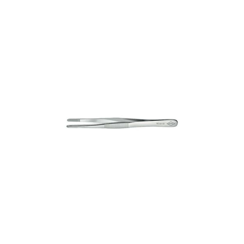 - Universally applicable<br>- Straight pattern<br>- Wide, round tips<br>- Serrated handlesKnipex Precision Tweezers. Material: Chrome-nickel steel, Product colour: Stainless steel, Tweezer tip style: Flat. Weight: 17 g, Length: 120 mm