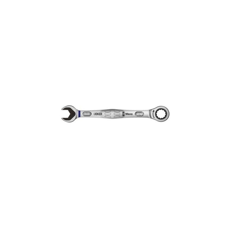 Ratcheting combination wrench; unique holding function, thanks to the metal plate in the jaw, reduces the risk of dropping nuts and bolts; replaceable metal plate in the jaw secures nuts and bolts with its extra hard teeth and reduces the danger of slipping; integrated limit stop prevents any slipping around the bolt head and allows higher torque to be applied; double-hex geometry makes for a positive connection with nuts or bolts and reduces the risk of slipping; return angle of only 30° at the open end to avoid time consuming flipping of the wrench during fastening jobs; ratchet mechanism at the ring end, with an exceptional, fine-tooth mechanism – 80 teeth in all – enables flexibility in very confined working spaces; specially forged geometry for high torque transfer and strength; high performance chrome molybdenum steel; nickel-chrome coating for high corrosion protection. Colour coding and forged dimension details to enable the desired JOKER to be easily located.<br><br>“Take it easy” tool finder system – with profile and size colour-coding for quick and easy tool selection. Colour-coded system for hexagon drive screws (L-Keys, Zyklop bit sockets), external hex drive screws and nuts (Joker wrenches, Zyklop sockets and Zyklop bit sockets with holding function), and TORX® drive screws (L-Keys, Zyklop bit sockets).<br><br>The Joker’s holding function means that nuts and bolts can be held in the jaw and easily positioned where they are needed. Fastening on to the thread can then be done quickly and safely, thanks to the innovative special stop-plate which holds the fastener. No more time-wasting searches for dropped nuts and bolts! After applying and positioning the nut or bolt, fastening can begin immediately – no additional tools required.<br><br>Constant re-positioning of the wrench? Difficulty holding fasteners in confined spaces? Easing off to avoid any risks of injury or fastener damage? That was yesterday. Today, the Joker prevents slipping off of the fastener head with its integrated limit-stop – no longer is the thumb needed to act as a depth stop. This makes applications much easier and allows signifi cantly more force to be applied during fastening jobs.<br><br>The Joker’s clever double-hex geometry delivers a very positive connection with nuts or bolts – it’s a perfect fit. And the exchangeable, hardened metal gripping plate in the Joker’s mouth literally bites itself into the bolt, with its extremely hard tips. Both features combine to prevent slipping, even at higher torque.<br><br>Instead of 60°, the Joker only has a 30° return angle thanks to it’s unique double-hex design. Along with the Joker’s straight neck, this means that flipping the wrench has become a thing of the past. With the Joker, you can now loosen and tighten nuts and bolts, in situations where conventional tools fail. Particularly in confined spaces, where conventional open-jawed wrenches cannot be used. The combination of limit stop and small return angle enables eff ective work, even on screw pipe connections.<br><br>The ratcheting feature at the ring end boasts an exceptional, fine tooth mechanism – 80 teeth in all – which provides greater flexibility, even in very confined workingspaces.Wera Joker. Wrenches/sockets sizes: 16 mm, Product colour: Stainless steel, Material: Steel. Width: 35 mm, Depth: 8.2 mm, Height: 212 mm. Number of pieces: 1 pc(s)