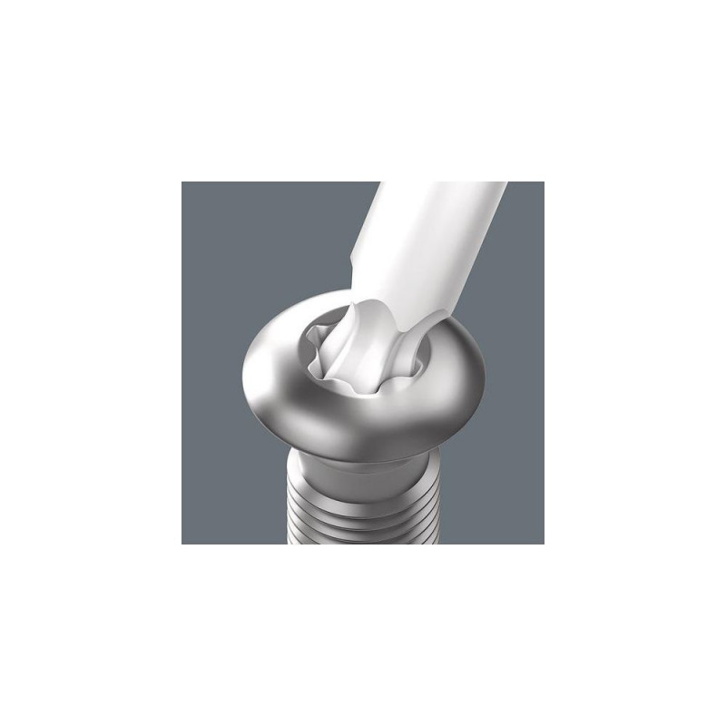 High quality L-keys for recessed TORX® screws. The ball-end on the long arm allows for reliable working even in difficult installation situations. Comes with extra-long arm. The BlackLaser surface treatment provides outstanding surface protection, even against corrosion, and a long service life. The tools are quickly to hand thanks to the laser-engraved and thereby wear-resistant size markings on the L-keys.Wera 967 PKXL TORX. Type: L-torx key, Torx key sizes: TX20, Product colour: Black. Key long arm size: 13.7 cm, Depth: 24 mm. Number of pieces: 1 pc(s)