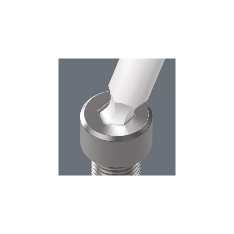 High quality L-key set for hexagonal socket screws in a practical clip fastener out of wear-resistant material, enabling secure storage of the L-keys as well as simple removal. L-keys with Hex-Plus profile: offers a larger contact surface within the screw head. This reduces the notching effects to a minimum and almost completely eliminates the risk of destroying the screw recess. The ball-end on the long arm allows for reliable working even in difficult installation situations. The BlackLaser surface treatment provides outstanding surface protection, even against corrosion, and a long service life. The tools are quickly to hand thanks to the laser-engraved and thereby wear-resistant size markings on the L-keys.Wera 950/9 Hex-Plus 6. Product type: L-shaped hex key, Type of hex key size: Metric, Number of keys included: 9 pc(s)