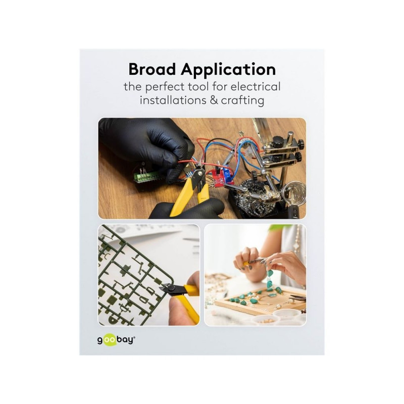 | Description | Always the sharpest tool in the box: Thanks to the precisely moulded cutting edges and pointed shape, the pliers ensure clean cable cuts even in hard-to-reach places. The perfect helper for DIY cable, internet and electrical installations. |