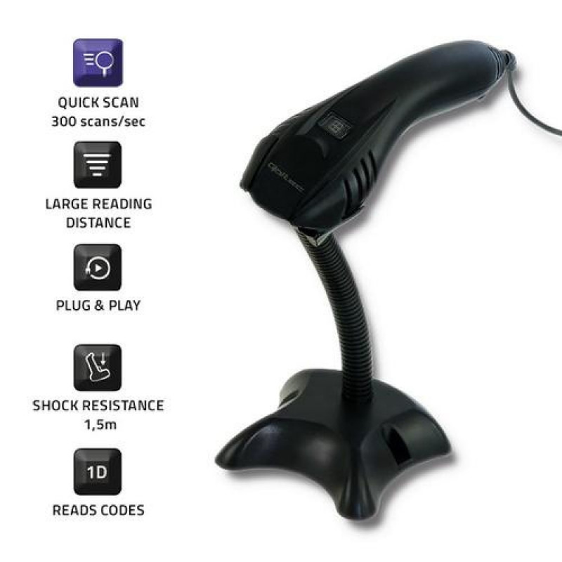 <b>RELIABLE AND EFFICIENT</b><br>Barcodes are everywhere. You will find them in warehouses, stores, pharmacies, offices, gyms and many other places that you visit every day. A Qoltec barcode reader is perfect for all of these locations. Our device guarantees:<br>- reading 1D codes, - efficient work at the speed of 300 scans per second,<br>- resistance to falls (from a height of 1.5m),<br>- automatic mode of operation, the codes are automatically scanned after approaching them to the scanner,<br>- scanning codes at different angles, including inverted ones,<br>- confidence that the code has been read correctly thanks to the sound signaling.<br><br><b>PRACTICAL DEVICE</b><br>The high quality of our barcode scanners is the result of thoughtful design based on the most important aspects of these devices. We know exactly what you expected of them, so to meet the most demanding working conditions we offer:<br>- Plug & Play interface - it guarantees the immediate operation of the barcode scanner without installing additional software,<br>- 140cm cable length - comfortable to use,<br>- USB plug - possibility to connect the device to a PC, laptop, the scanner can work 24 hours a day,<br>- ergonomic shape - easy to hold.Qoltec 50861. Type: Handheld bar code reader, Scanner type: 1D, Sensor type: Laser. Connectivity technology: Wired, Standard interfaces: USB, Cable length: 1.4 m. Product colour: Black, Housing material: Acrylonitrile butadiene styrene (ABS), Polycarbonate (PC), Polyvinyl chloride (PVC). Power source type: USB, Input voltage: 5 V, Power consumption: 50 mA. Weight: 150 g, Width: 185 mm, Depth: 67 mm