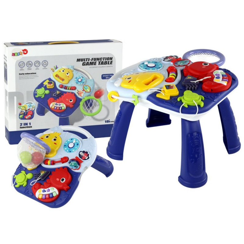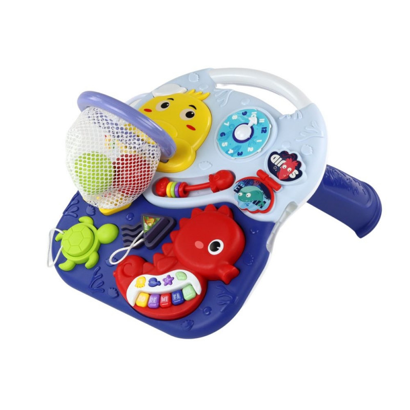 2-in-1 hariv laud mereelukate motiiviga on interaktiivne mänguasi, mis toetab lapse kognitiivset, motoorset ja sensoorset arengut. Tänu arvukatele harivatele elementidele innustab laud last aktiivselt mängima, helisid avastama ning arendama liigutuste koordineerimist.