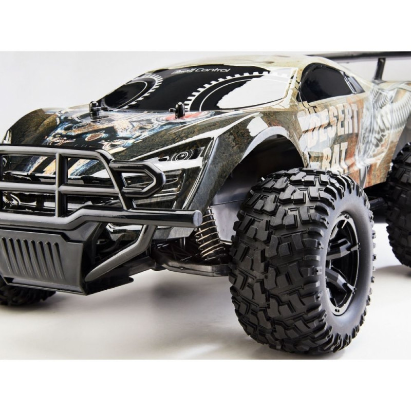 Desert Ratil on detailne trükitud kere, mis näeb mitte ainult suurepärane välja, vaid on ka paindlik ja vastupidav. Ülimalt pehme vedrustus tagab suurepärase jõudluse maastikusõidul. Tänu täiustatud 2,4 GHz kaugjuhtimistehnoloogiale saad sõita koos sõpradega ilma häireteta.