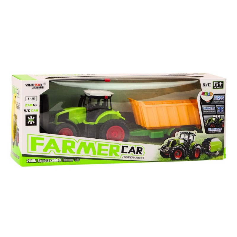 Kaugjuhitav traktor skaalas 1:16 koos haagisega on suurepärane mänguasi lastele, kes armastavad põllutöömasinaid. Traktor, mis on iseloomulikus rohelises värvitoonis, peegeldab realistlikku välimust, omab suuri, vastupidavaid rattaid ning detailirohket juhi kabiini, mis lisab mängule autentsust. Haagis, mis on valmistatud erksas kollases värvitoonis, kinnitub traktori haakekonksu külge ning sellel on omanäoline disain ja hoolikalt viimistletud detailid.