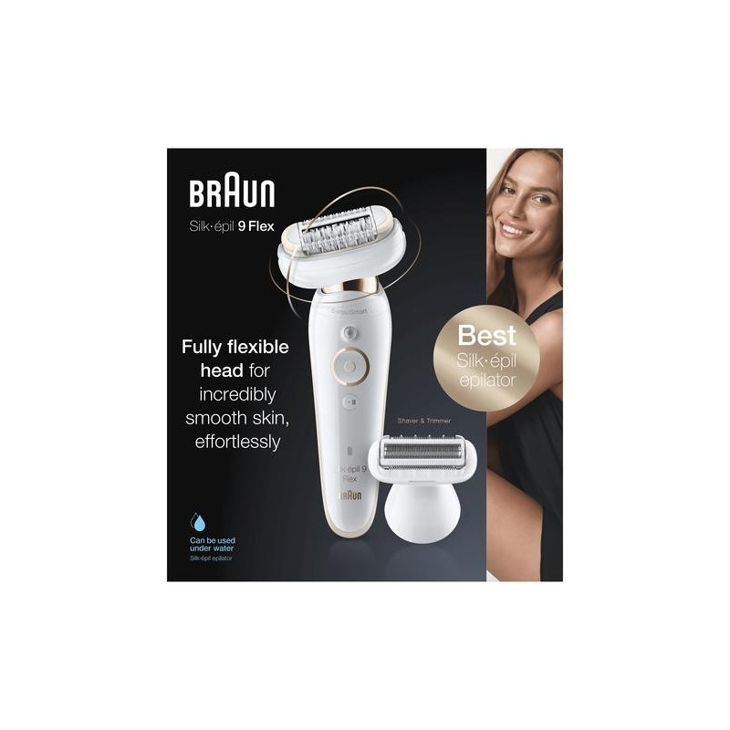 <br />Braun Silk-épil 9-9002 Flex. Product colour: Gold, White, Number of tweezers: 40 tweezers, Body areas: Armpit, Bikini, Front thigh, Inner upper arms. Power source: Battery, AC input voltage: 100 - 240 V, Battery type: Built-in battery. Weight: 478 g, Battery weight: 31.9 g. Package type: Box, Package width: 65 mm, Package depth: 180 mm. Master (outer) case width: 188 mm, Master (outer) case length: 406 mm, Master (outer) case height: 210 mm
