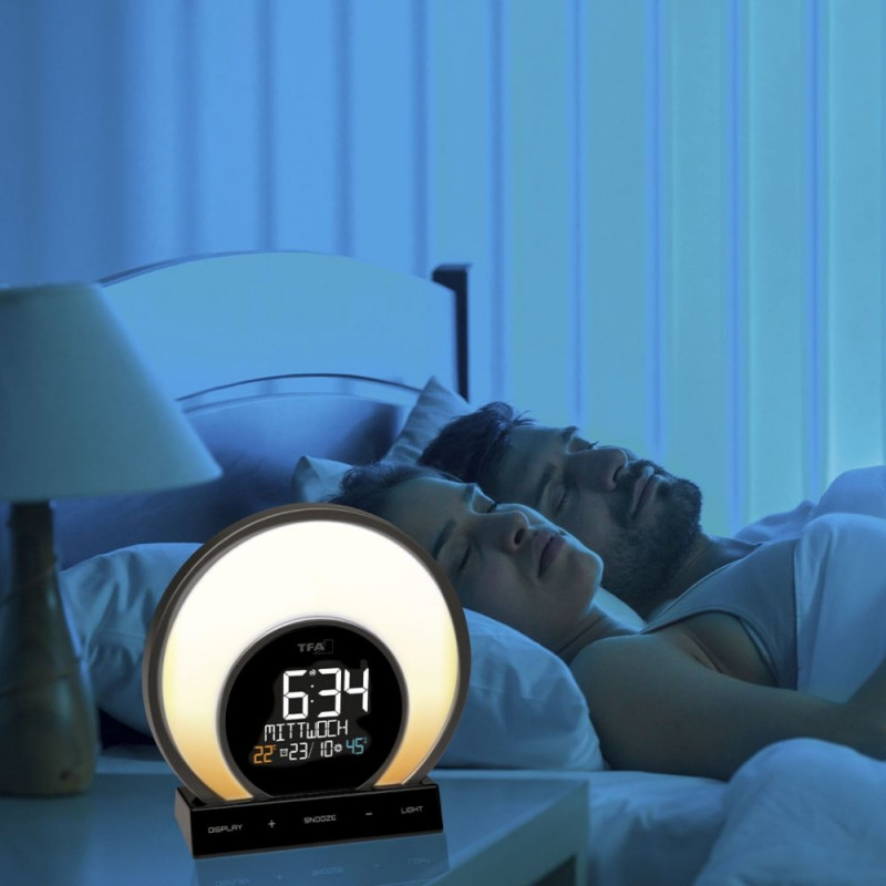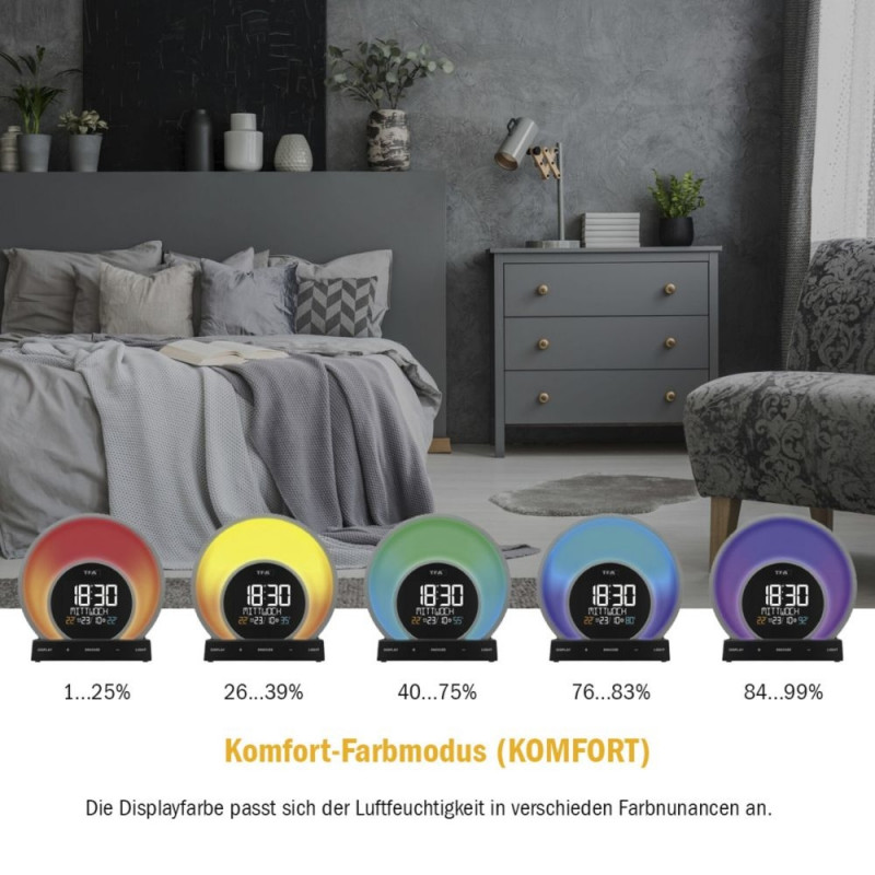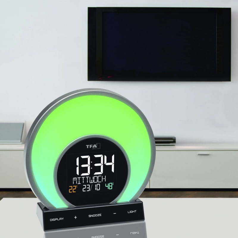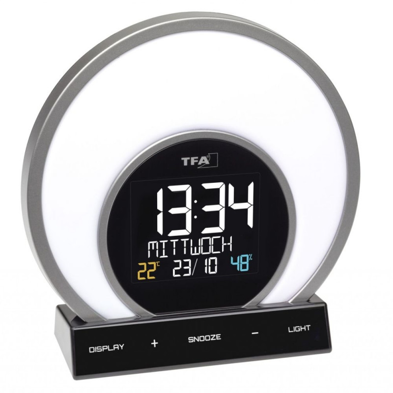 Light alarm clock with colour-changing mood light and room climate SOLUNA 60.2026 The SOLUNA light alarm clock combines the two Latin words for sun (sol) and moon (luna). Our body needs the natural light-dark change as a clock for the inner clock. WiOsta kohe, viimased eksemplarid laos!