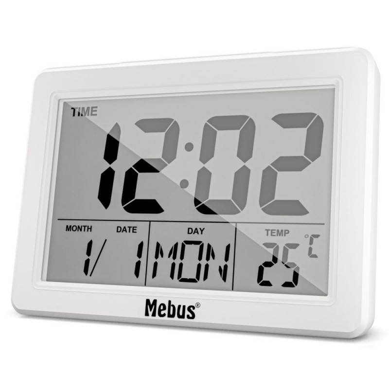Mebus 25738 Quartz Alarm Clock Features: Extra large display: for optimum readability of the time, date, day of the week and indoor temperature. With indoor thermometer: See the current room temperature in °C or °F at a glance. Ensure the right liviOsta kohe, viimased eksemplarid laos!