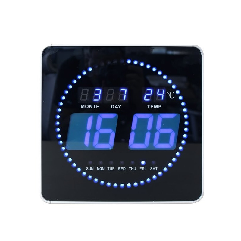 Seinakell UNILUX Flo LED, sinised digitaalnumbrid H-6cm; must mineraaklaas alum.raamis; 28x28x3.5cm/