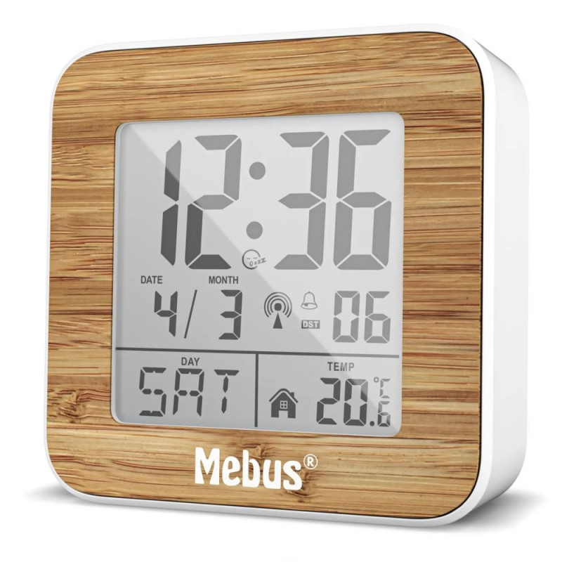 Mebus 27247 valge/puidu välimusega digitaalne raadio äratuskell