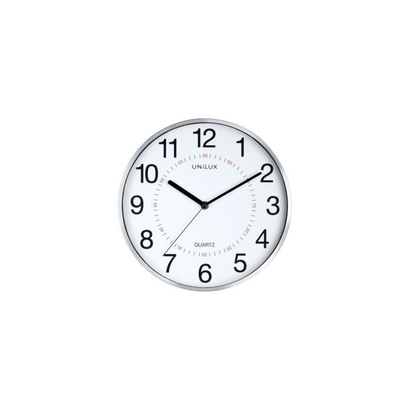 <b>QUART SYSTEM</b><br>High precision<br><br>The mechanism of quartz clock, based on the phenomenon of piezoelectricity, is one of the most energy-efficient, for a reliability of a 1 second discrepancy over a 6 years running period.<br><br><b>PERFECT VISIBILITY</b><br>Easy to read<br><br>With the high size glass, ARIA is an ideal clock for individual offices or collective offices of small size. Its double large number display allows an easy reading from a distance up to 30 metres<br><br><b>DESIGN</b><br>Sober look<br><br>With its large arabic numbers and ARIA is ideal for individual offcies. Easy to fix on the wall.Unilux 400094280. Placement supported: Wall, Type: Quartz clock, Form factor: Round. Battery type: AA, Battery voltage: 1.5 V. Weight: 600 g, Diameter: 28.5 cm