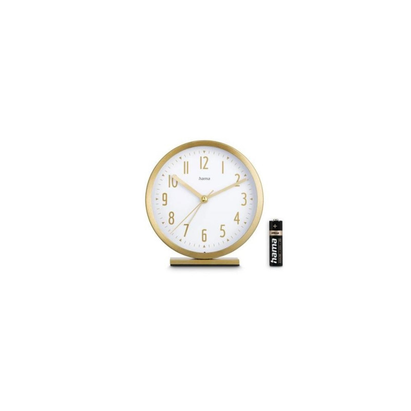 <b>Silent clock movement</b><br>Sweep second hand that keeps the clock quiet<br><br><b>Plastic-free</b><br>Packaging with a clear conscience: our packaging is 100% plastic-free, enabling us to reduce plastic waste and increase its recyclability<br><br><b>FSC</b><br>FSC-certified: the paper and cardboard used in our packaging comes from sustainable forest management - enabling us to take a resources-sparing approach to the raw material of woodHama Skye. Shape: Round, Product colour: Gold, White, Recommended usage: Indoor. Display type: Analog. Power source: Battery, Battery type: AA. Width: 112 mm, Height: 120 mm, Depth: 35 mm. Quantity per pack: 1 pc(s)
