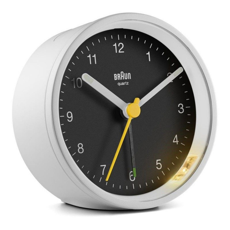 Braun BC 12 WB kvartsäratuskell on stiilne ja funktsionaalne äratuskell, mis sobib ideaalselt nii magamistuppa, kontorisse kui ka reisile kaasa võtmiseks. Selle minimalistlik ja ajatu disain on inspireeritud klassikalisest Braun’i esteetikast, pakkudes samal ajal tänapäevast täpsust ja töökindlust. Kell on valmistatud kvaliteetsetest materjalidest ning selle valge korpus sobitub suurepäraselt erinevate interjööridega.