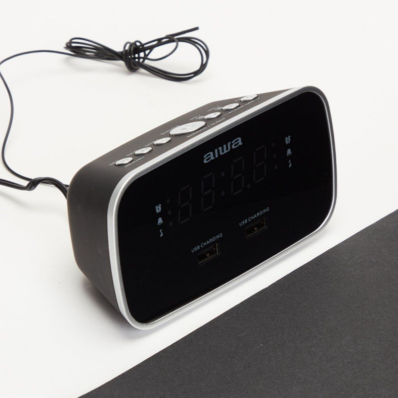 Aiwa CRU-19BK Alarm Clock Radio 2x USB