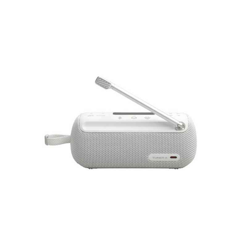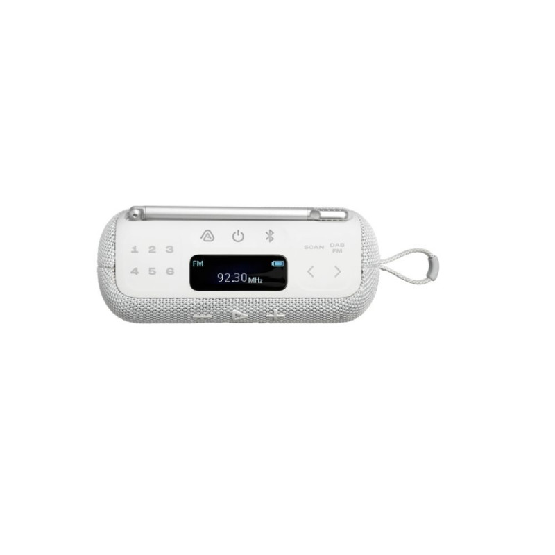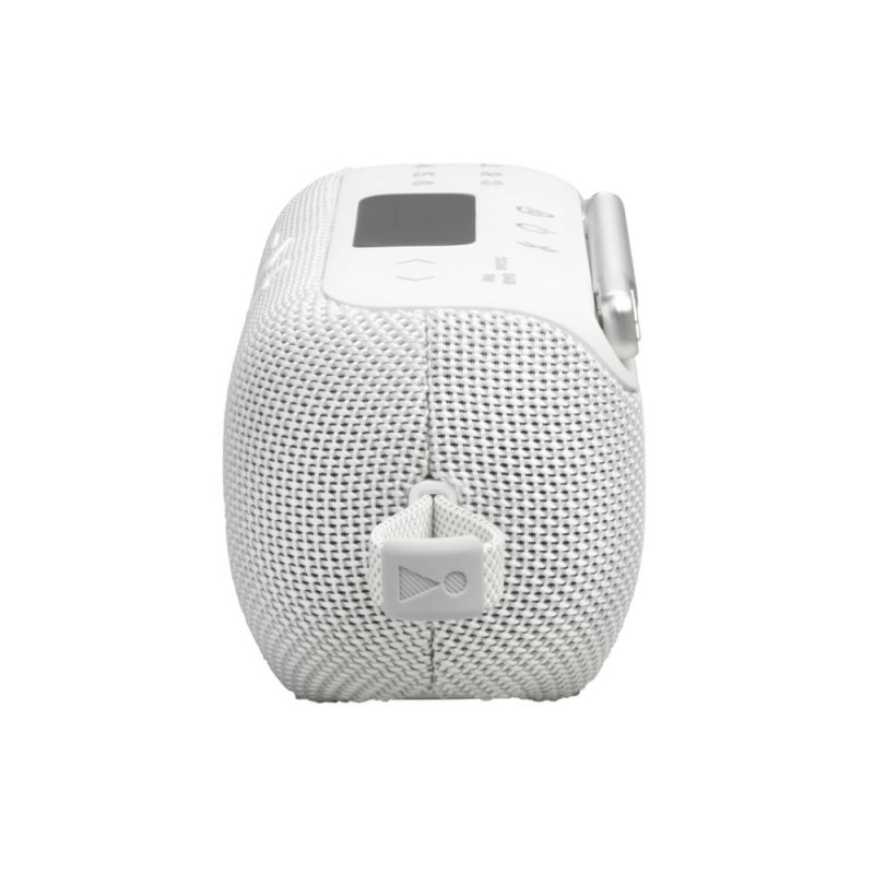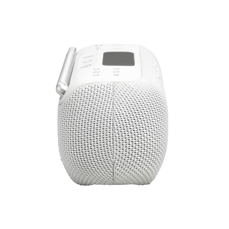 Portable radio with FM + DAB/DAB+ reception, analog and digital tuner. Delivers crystal clear JBL Pro Sound with enhanced bass. Waterproof and dustproof (IP68), suitable for indoor and outdoor use.